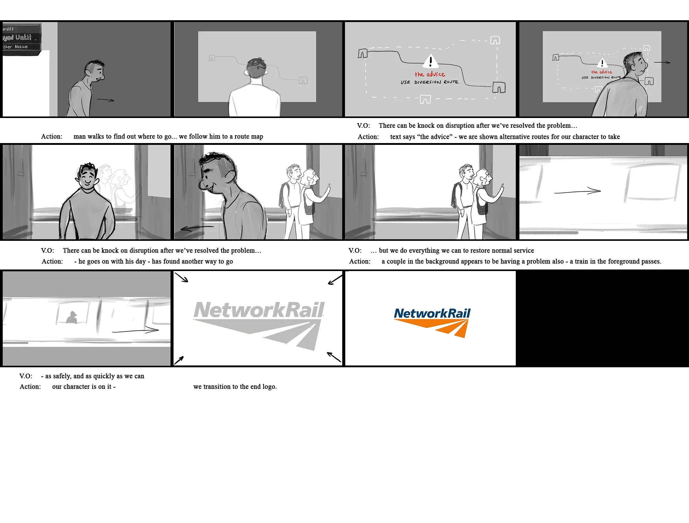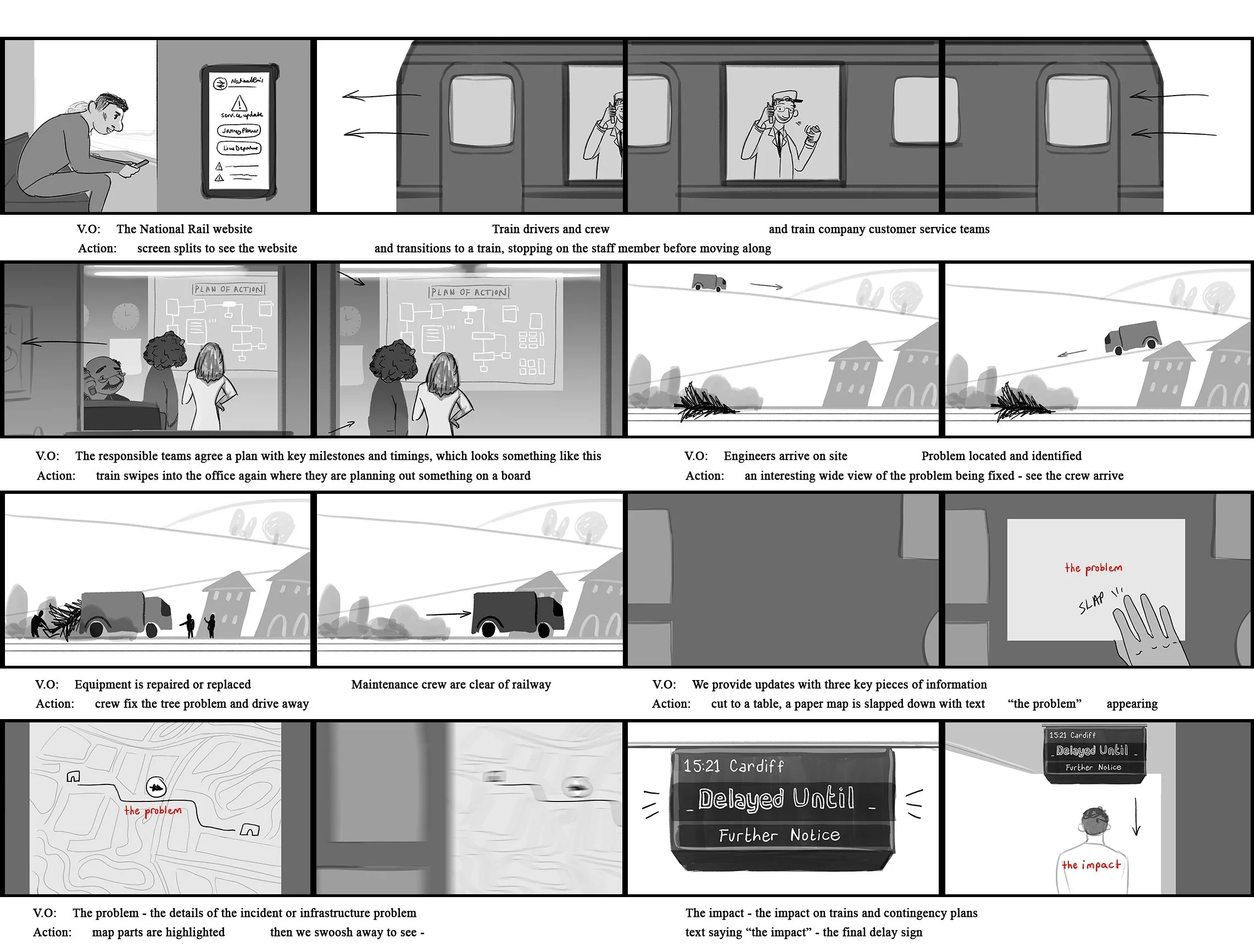 So I wanted nicely framed shots and character moments to tell a story and compliment the voiceover. Keeping the tone lighthearted and playful worked quite well (despite the topic of delays!).